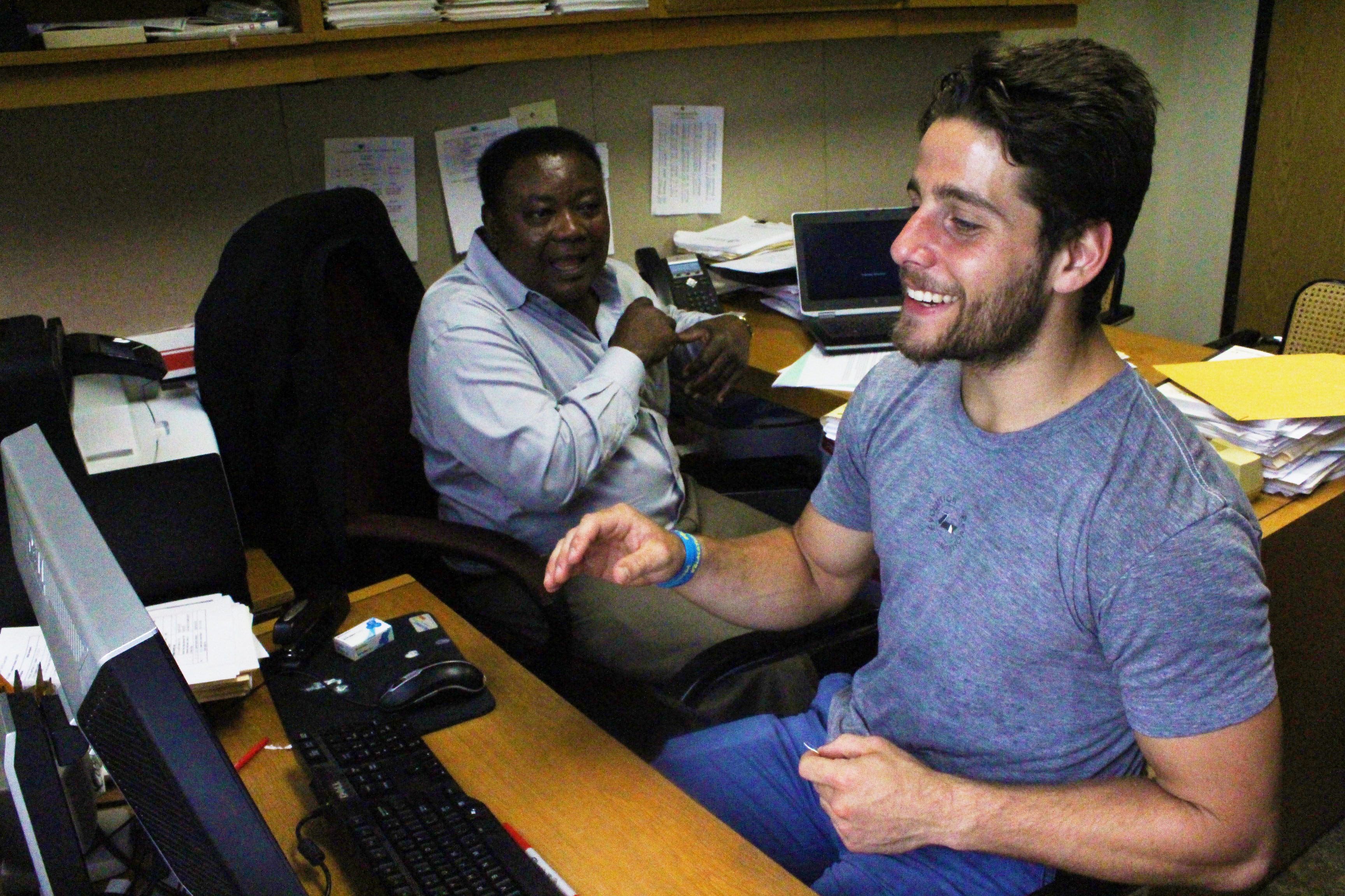 Noah is a teaching assistant for Professor Rowland Atiase’s cost accounting class at the University of Texas at Austin. He jokes with Atiase while he helps him in his office and inputs student grades. Noah says Atiase has been one of his favorite professors throughout his college career.